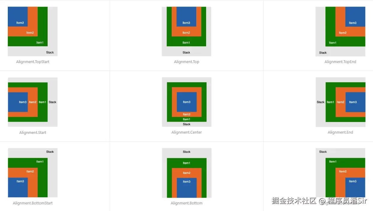 用于设置子组件的对齐方式,该属性可通过枚举类型Alignment