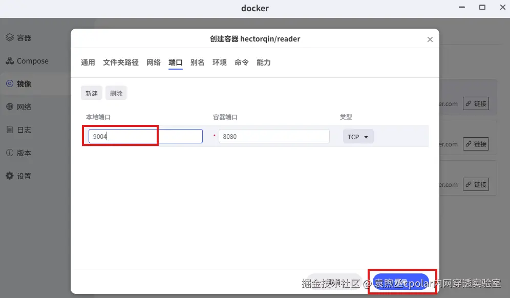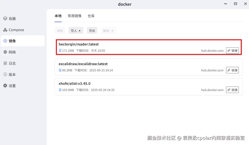 回到docker的本地镜像界面,双击下载好的reader镜像,开始部署。