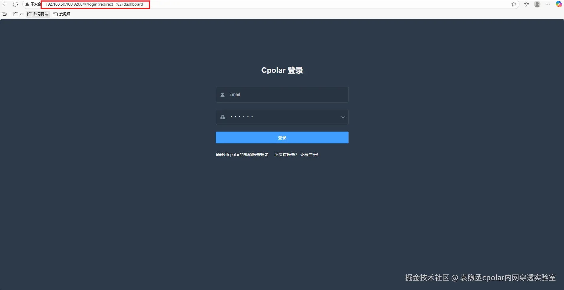 Cpolar安装和成功启动服务后,在浏览器上输入虚拟机主机IP加9200端口即:【http://192.168.50.100:9200】访问Cpolar管理界面,使用Cpolar官网注册的账号登录,登录后即可看到cpolar web 配置界面,接下来在web 界面配置即可: