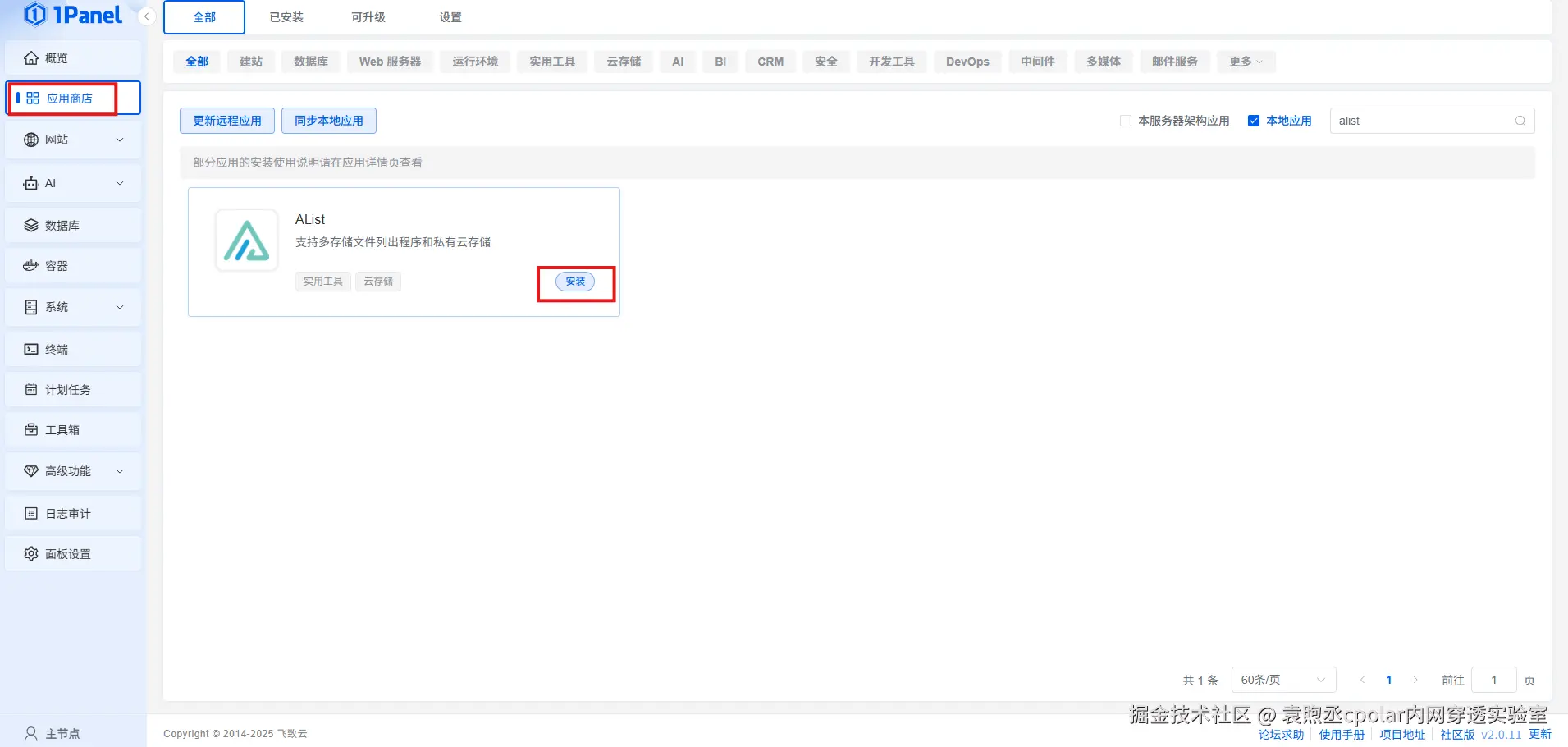 通过以上操作,你已借助1Panel在极空间上成功部署Alist。图形化界面让安装变得简单直观,省去了繁琐的命令行配置。现在,你可以通过Alist统一管理多个云盘文件,轻松实现高效访问与集中管理。