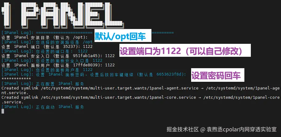 接下来进入1Panel的自定义安装界面。这里需要特别注意,安装目录应填写我们之前创建的"1panel"文件夹的实际路径。其他设置项,如面板端口、安全登录入口、管理员账号和密码,建议根据个人习惯进行修改,使用自己熟悉的配置,便于后续管理与记忆,同时也能提升安全性。