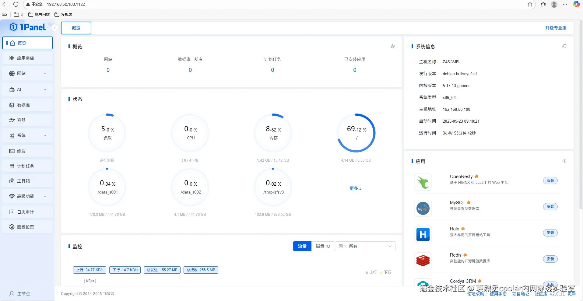 - 1Panel:轻量级管理面板,通过图形化界面简化服务器运维,支持一键部署Docker应用(如Emby、Alist)、SSL证书自动签发、定时任务等,彻底告别命令行!