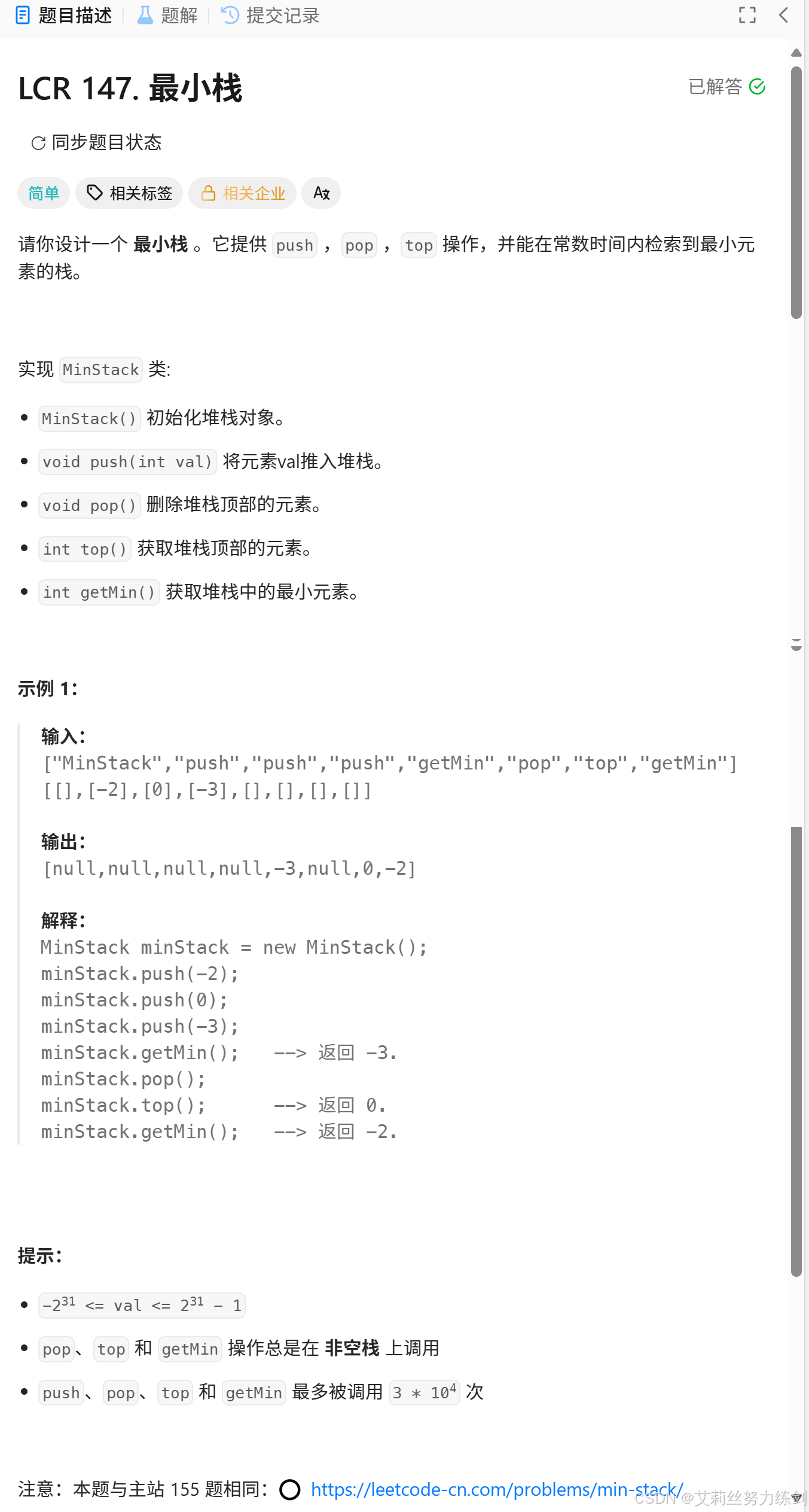 (和155. 最小栈一样,随便点哪个链接都可以)