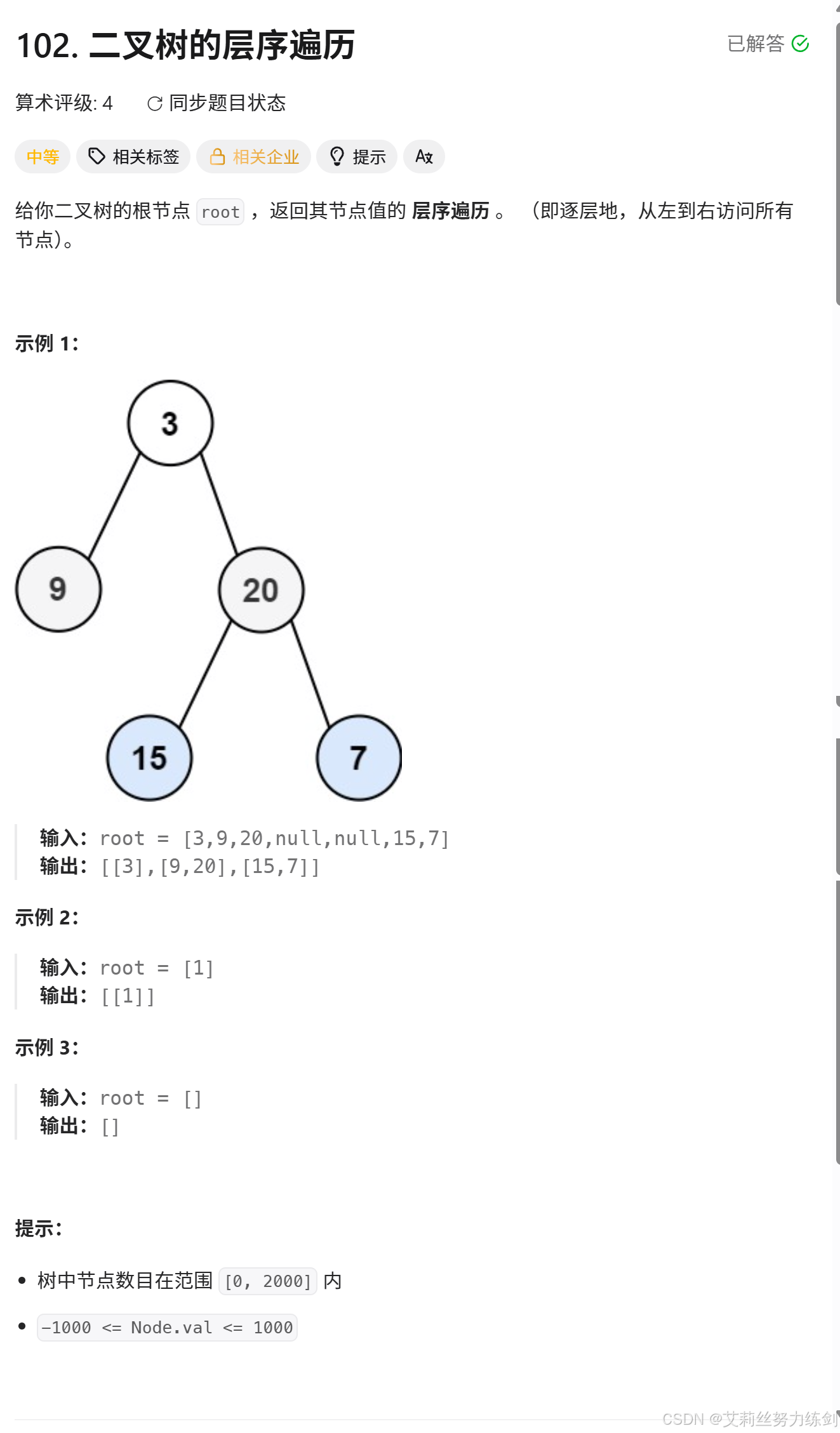 力扣题解链接:队列解决【二叉树的层序遍历】问题