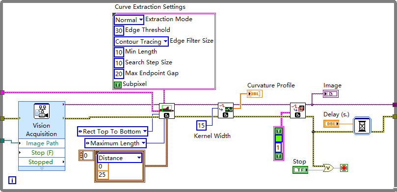 提取图像边缘轮廓,再用IMAQ Compute Curvature