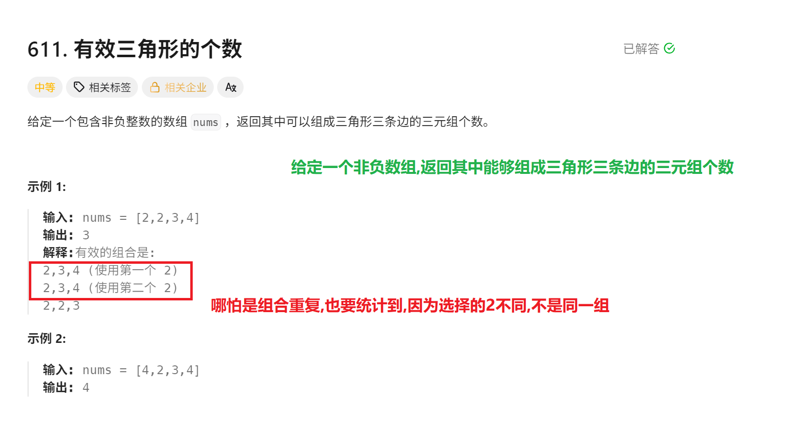 情况一:中间的数据 都是 > a 所以不必枚举了,符合个数= right-left 然后right--情况二: 2+5 < 10 ,数据小了 => left++ 判断是否能构成了,不构成就重复上述操作
