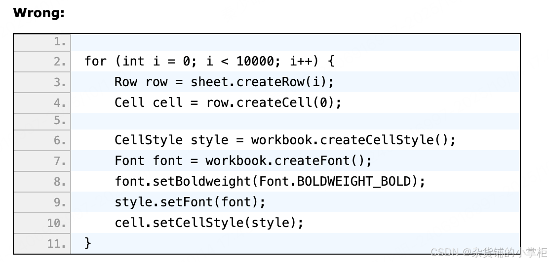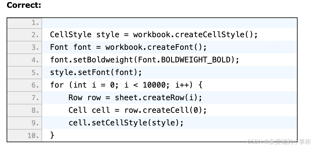 在一个工作薄中,最多32767个不同的字体,尽量复用字体,而不是给每个单元格创建一个字体