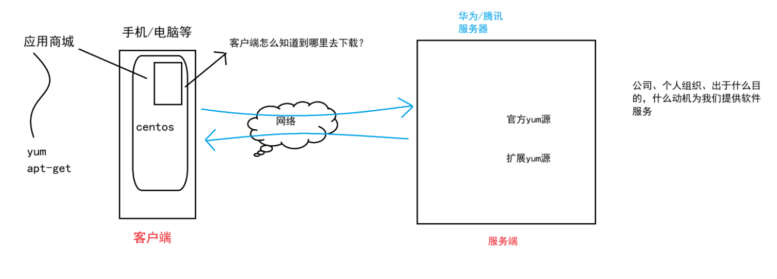 路径下的配置文件来生成下载链接(结合 OS 版本和要下载的软件),进而辅助完成下载、安装操作。一般系统内置的链接指向 CentOS 国外官网,下载速度慢,所以需要进行配置,配置的本质就是修改或更改配置文件内容。