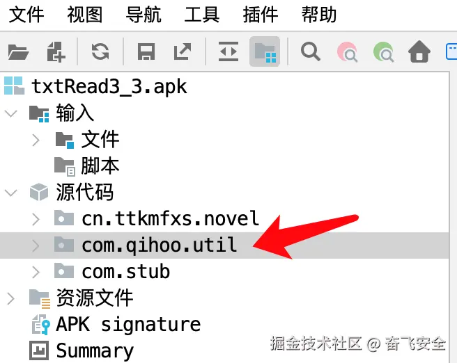 很明显不对劲,这种只有2-3个类的,就是加壳之后的明显特征,至于加了什么壳, qihoo 已经很明白告诉我们了,就是数字壳。