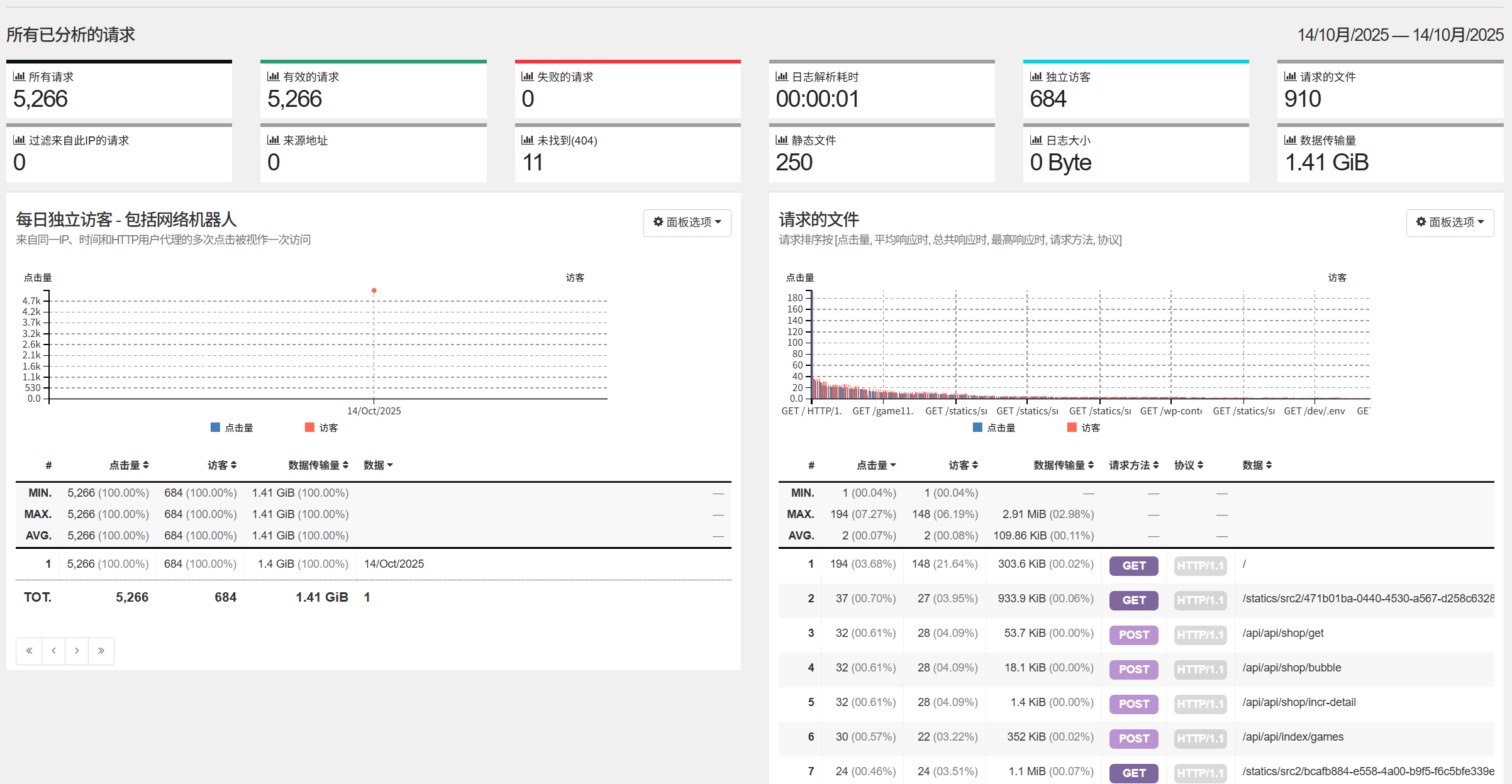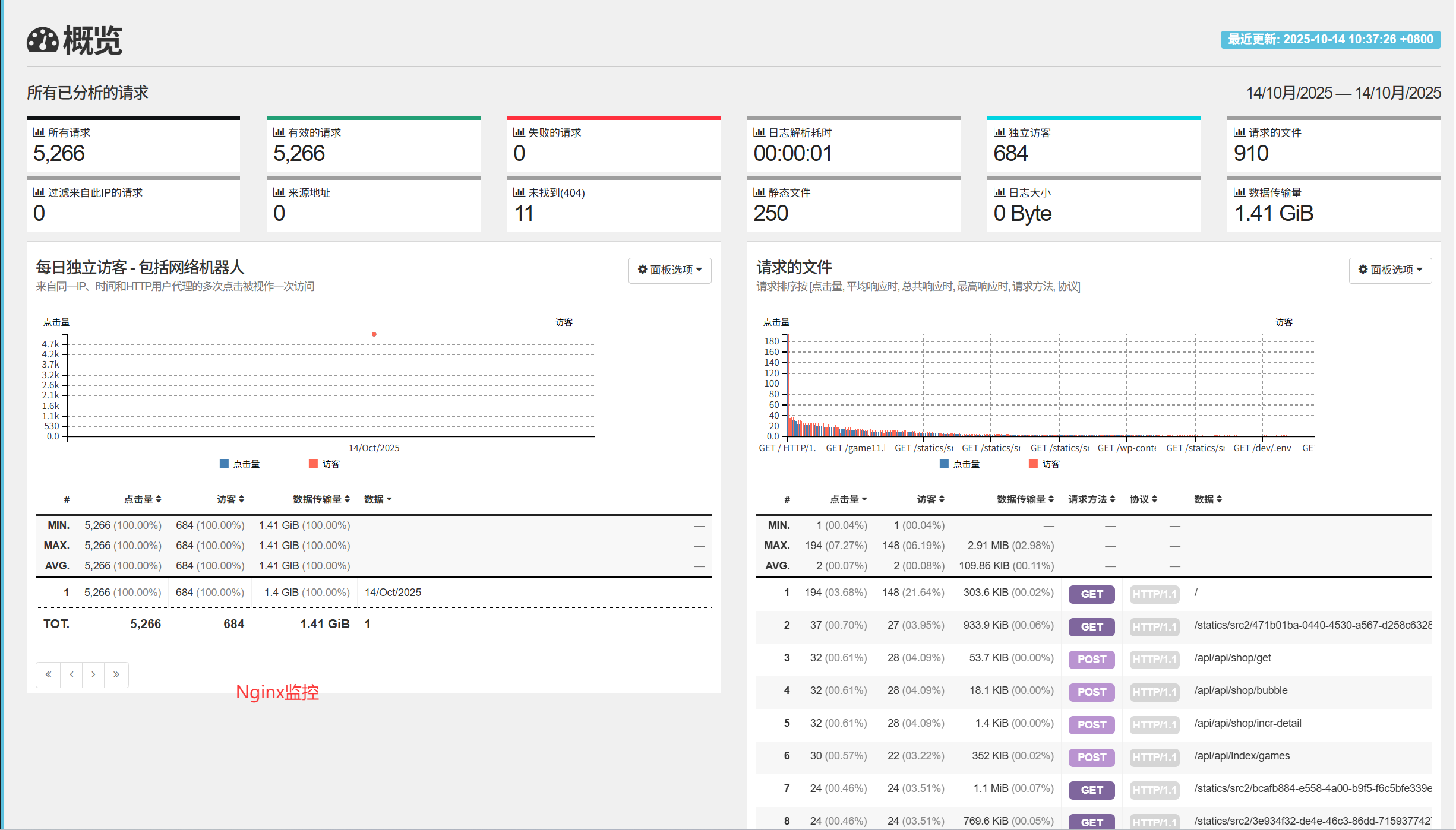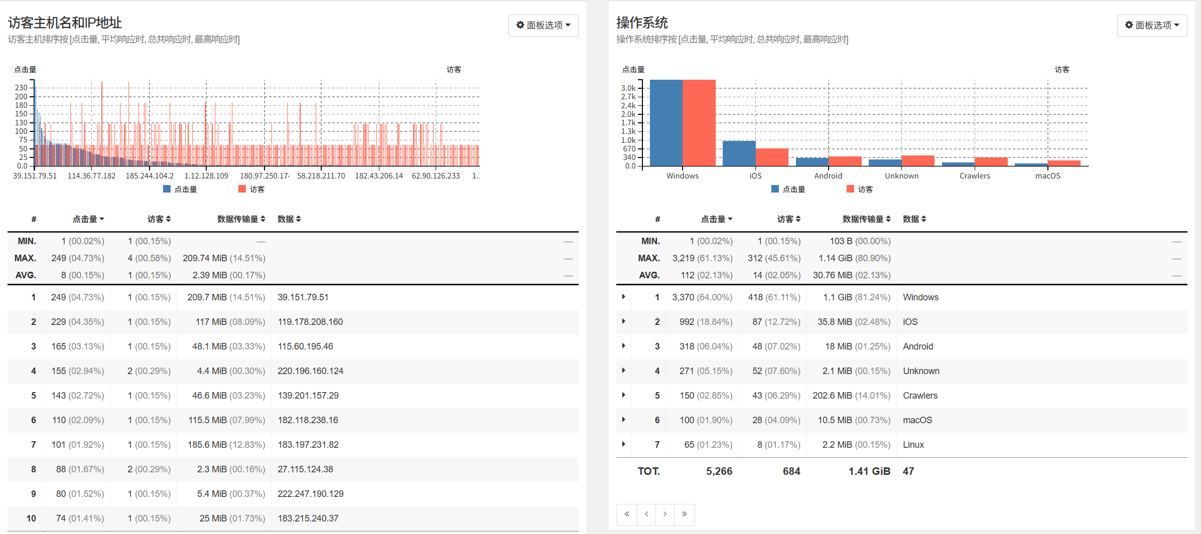 服务器需要安装nginx和goaccess。 并且nginx要开启访问日志。 可以监控很多信息,这里我截图几个: