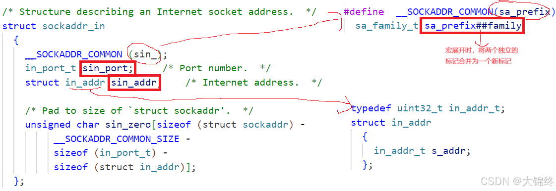 基于 TCP/UDP 和 IP 协议的套接字,用于不同主机间的网络通信 - 接口中常用sockaddr结构