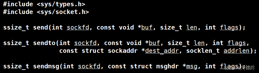 主要用于向无连接的套接字(通常是 UDP 套接字)发送数据,需要指定接收方的地址信息,addrlen是输入型参数 - sendmsg 函数