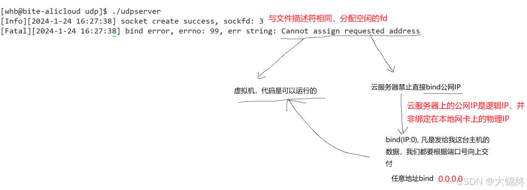4.返回值调用成功时,会返回一个非负整数,这个整数被称为套接字描述符,也叫文件描述符(在 UNIX 和类 UNIX 系统中,套接字在一定程度上被当作文件来处理 ),用于标识新创建的套接字。在后续的操作,比如bind(绑定地址和端口)、connect(连接到服务器)、send(发送数据)、recv(接收数据)等函数调用中,都需要使用这个套接字描述符来指定操作的对象。调用失败时,会返回 -1 ,并且会设置全局变量errno来指示错误的具体原因