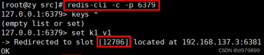 - 每次录入、查询键值,redis都会计算出该key应该送往的插槽,如果不是该客户端对应服务器的插槽,redis会报错,并告知应前往的redis实例地址和端口