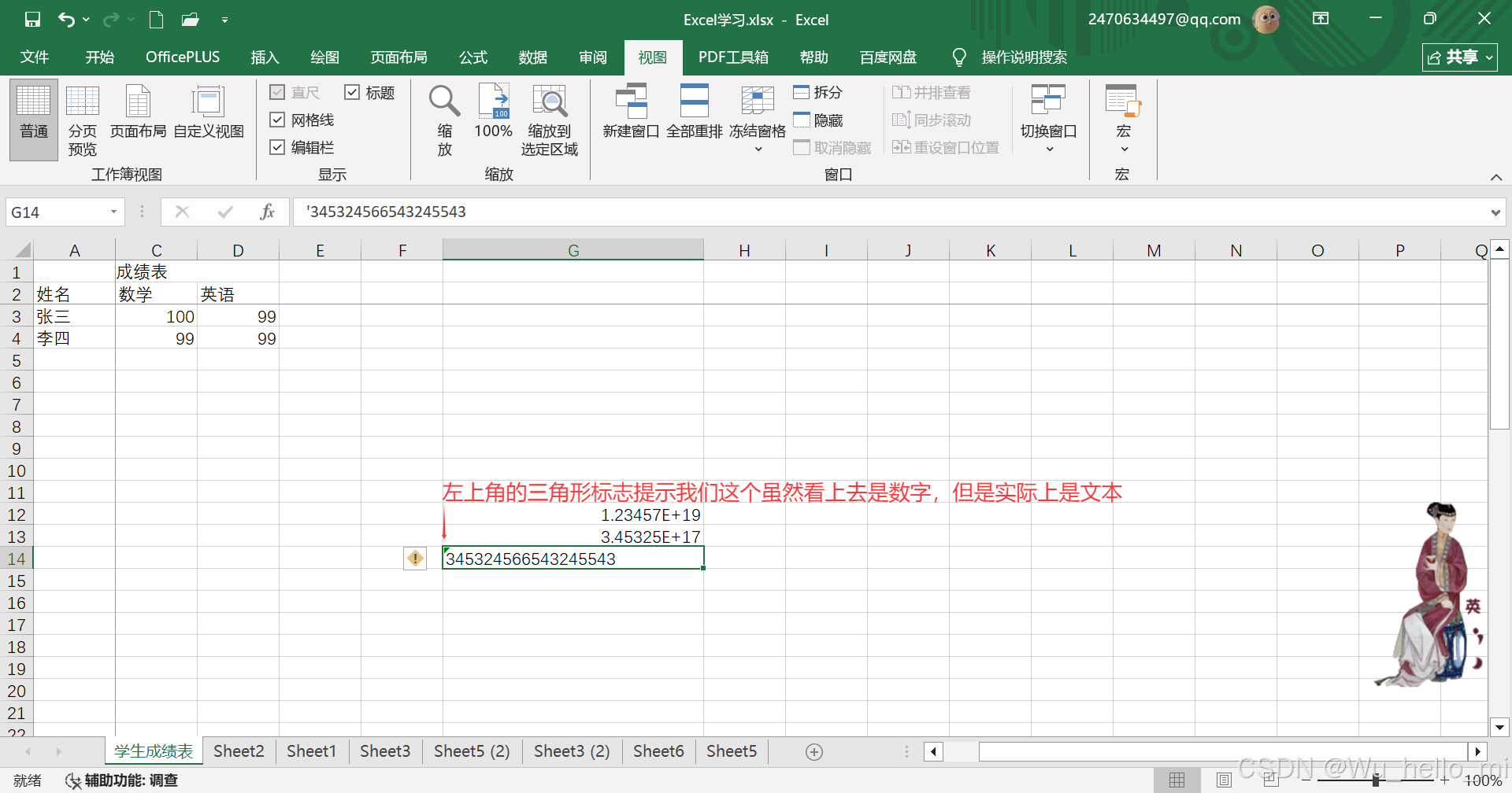 再输入内容,显式的就是文本形式的数字了。(此时没有写单引号,而是直接写的数字,结果是也能以文本的形式展示。)