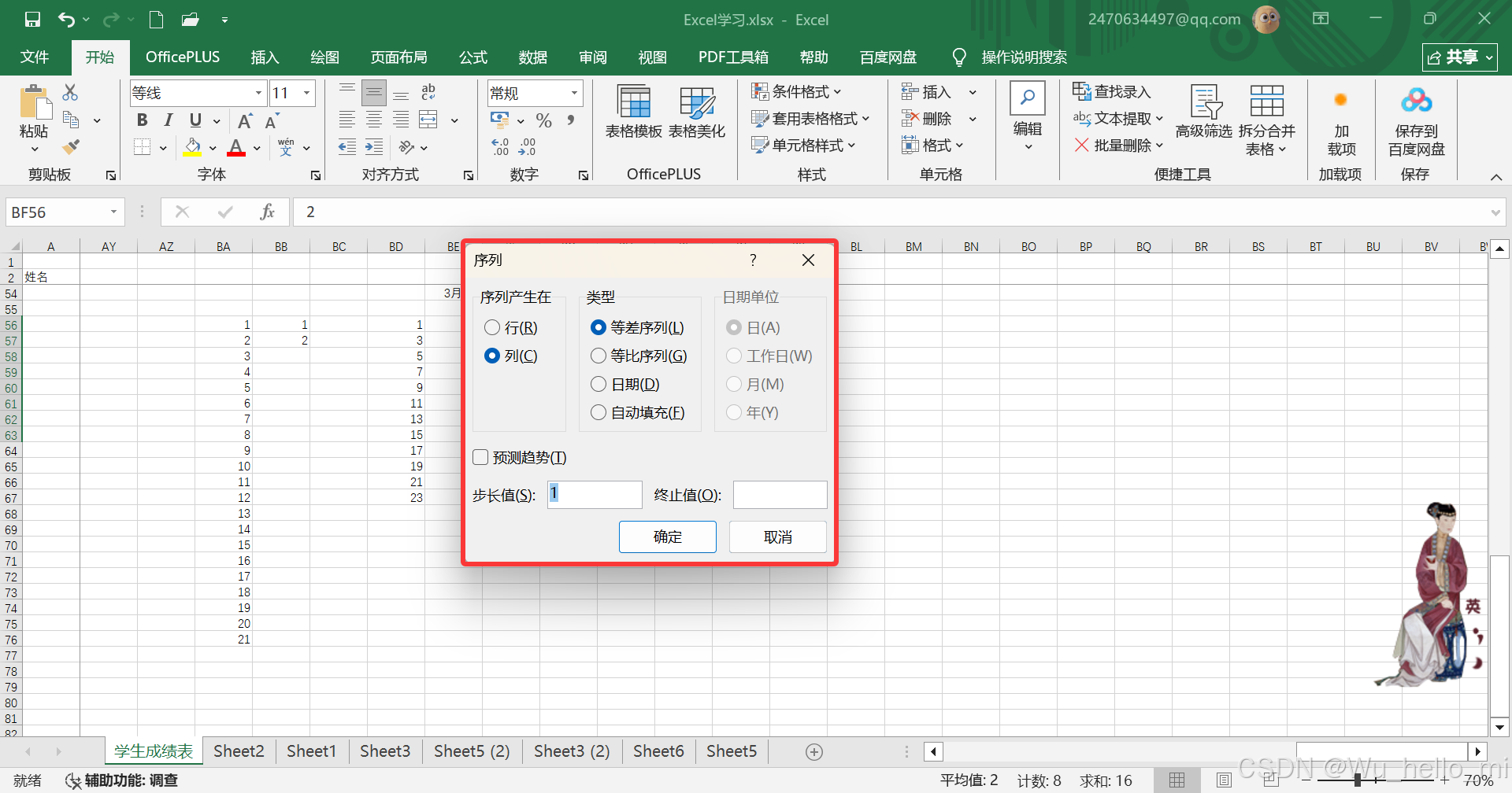 最开始写的1和2这两个数字就是为了告诉Excel这个序列要使用什么样的规律去填充。