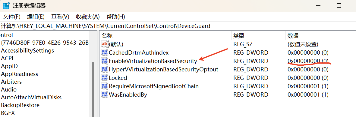 计算机\HKEY_LOCAL_MACHINE\SYSTEM\CurrentControlSet\Control\DeviceGuard