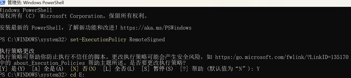①管理员模式打开PowerShell,输入