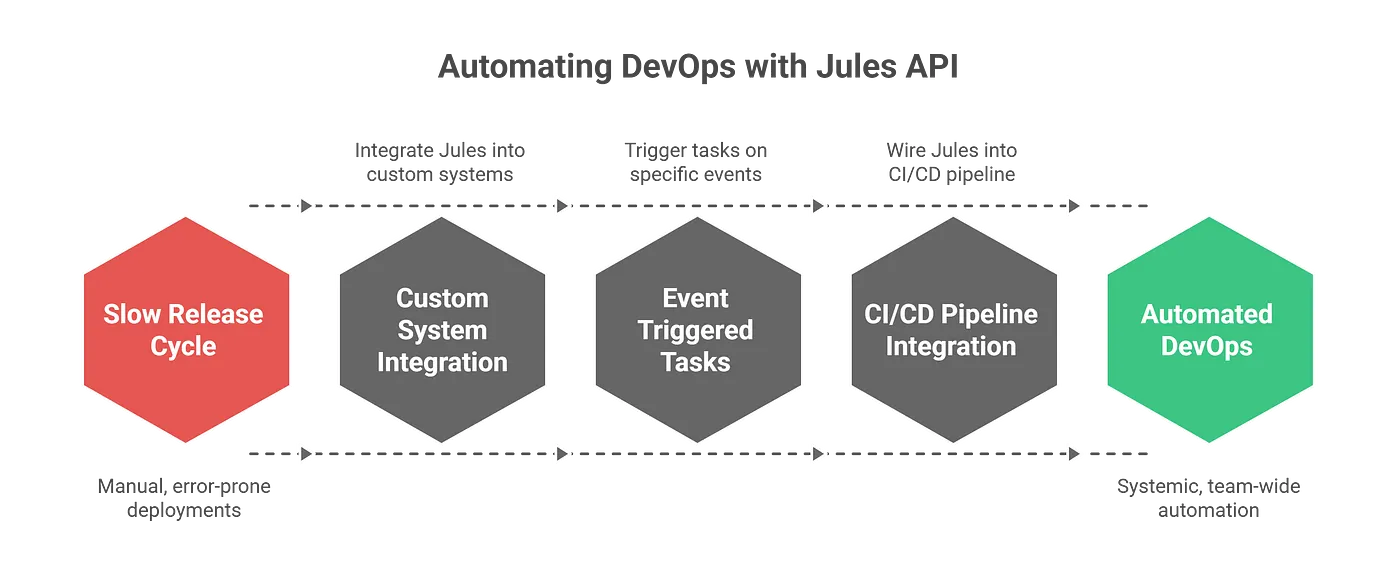 Jules API的推出通过瞄准管理发布周期的系统,提供了一种战术优势。通过开放API,谷歌允许开发者和DevOps团队将Jules集成到自定义系统中,在特定事件发生时触发任务,最重要的是,将Jules直接连接到CI/CD管道中。这一决策代表了一种战略性尝试,旨在避开竞争激烈的集成开发环境(IDE)战场,在这个战场上,Copilot与Visual Studio Code等其他主要编辑器深度集成。相反,谷歌将重点放在了DevOps编排层。