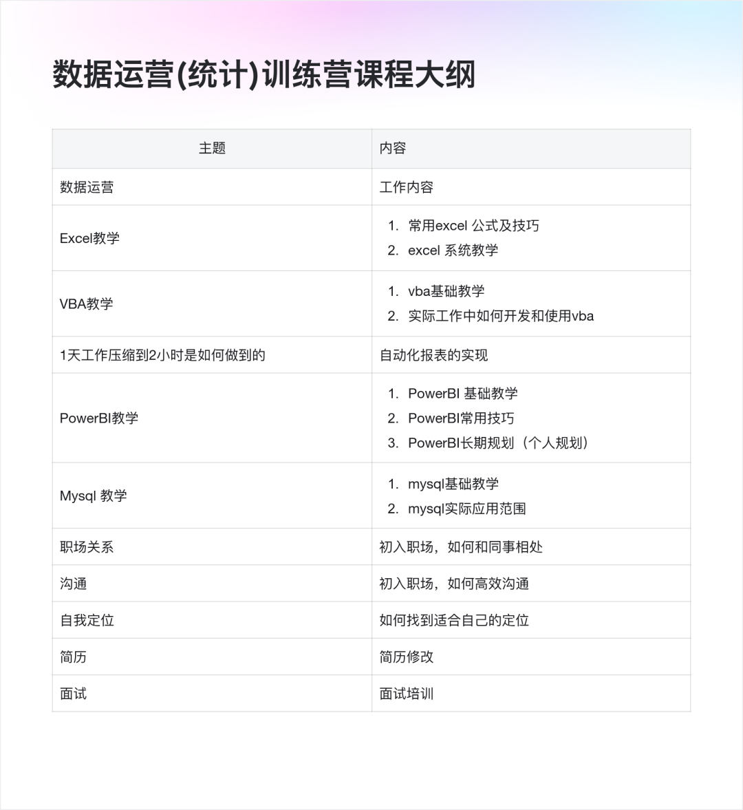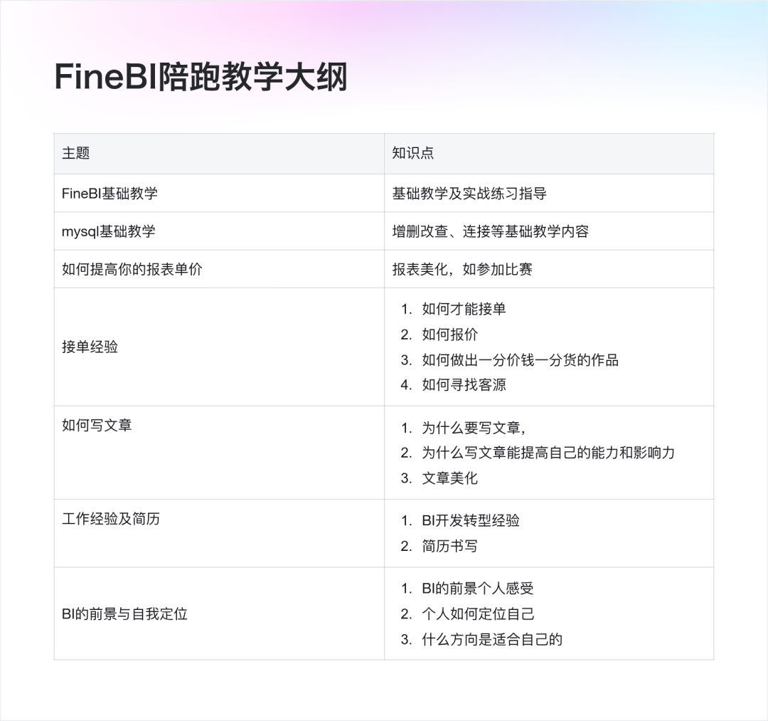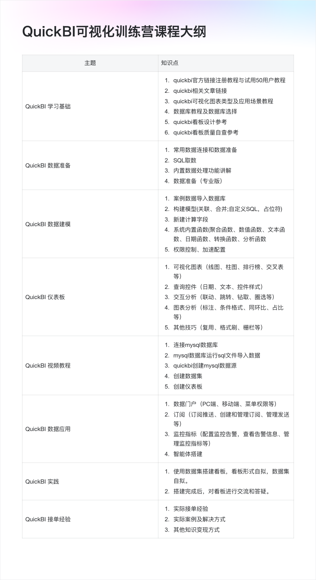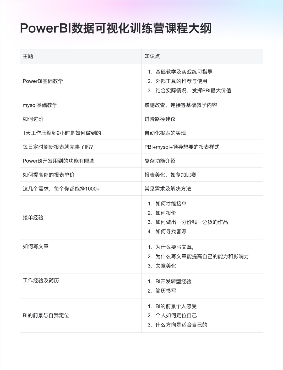 陪跑教学大纲:PowerBI & QuickBI & FineBI & 数据运营& 面试& 简历修改等