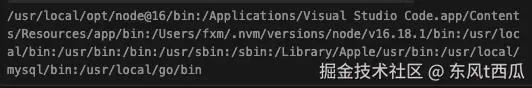 // usr/local/opt/node@16/bin:/Applications/Visual Studio Code.app/Contents/Resources/app/bin:/Users/fxm/.nvm/versions/node/v16.18.1/bin:/usr/local/bin:/usr/bin:/bin:/usr/sbin:/sbin:/Library/Apple/usr/bin:/usr/local/mysql/bin