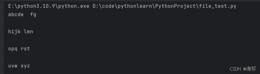 在这里,对因为不同字符串之间都是空格范围内开的,所以想着把每一行以空格为间隔分割成一个列表,每个字符串为一个元素
