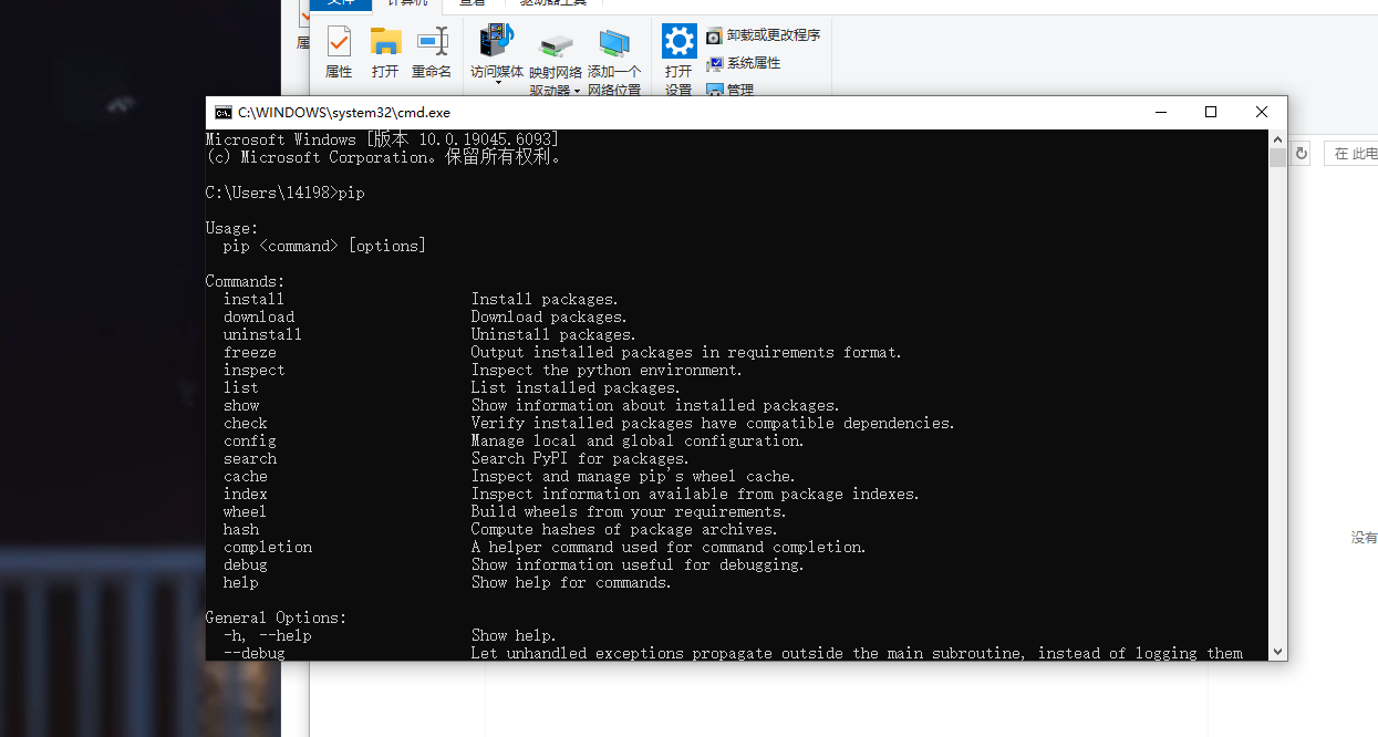 在cmd 输入pip查看是否安装成功,出现帮助信息就是好了