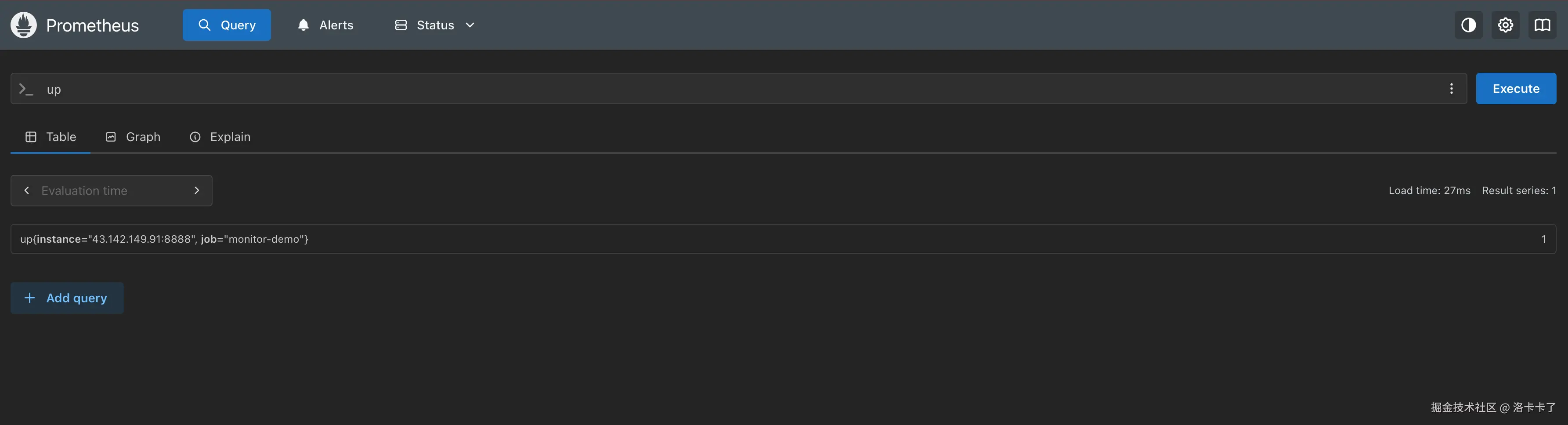 - 下方 Queries:用于输入 PromQL 查询语句;