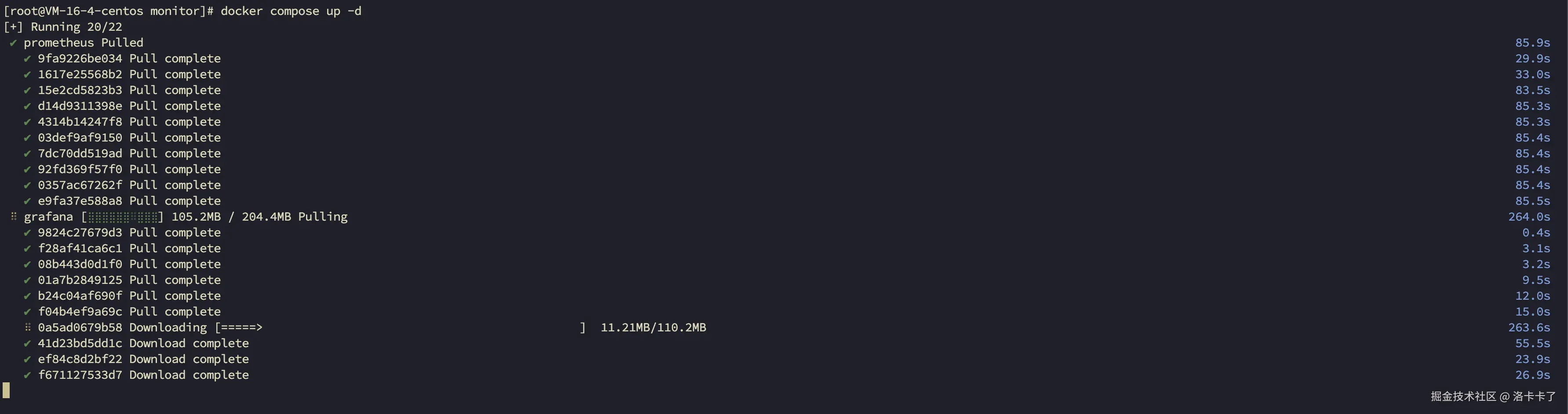 Prometheus 负责采集和存储监控数据,Grafana 用来做可视化展示------