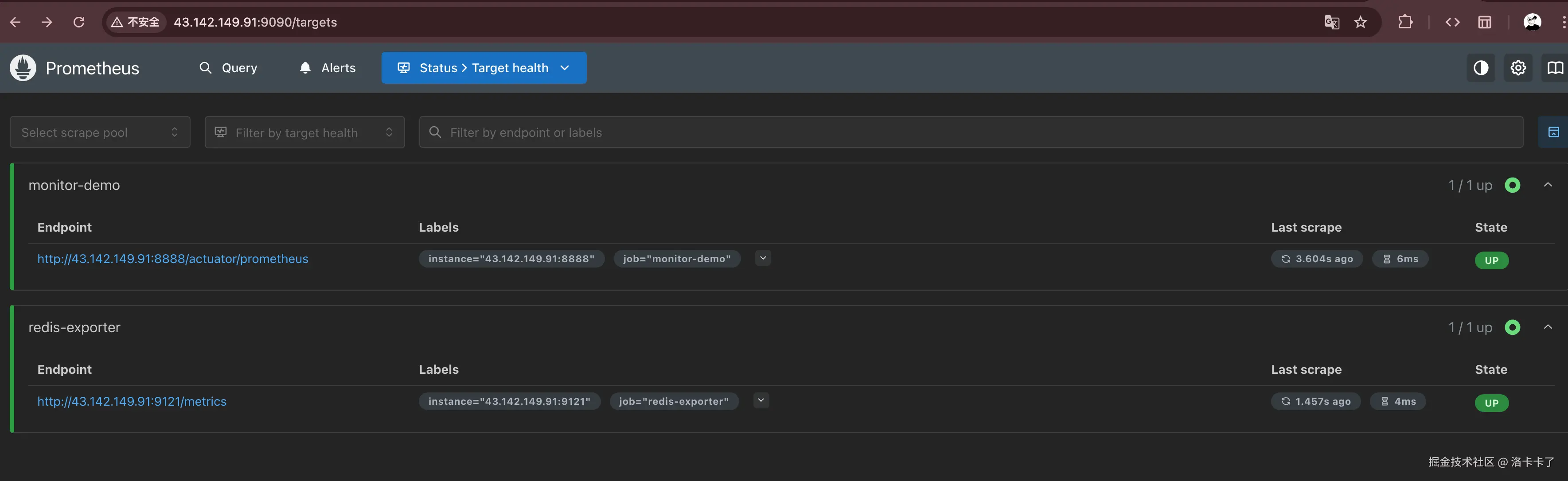 Prometheus 会按照配置的时间间隔,不停地去这些 Exporter(也叫 Target)拉取数据。