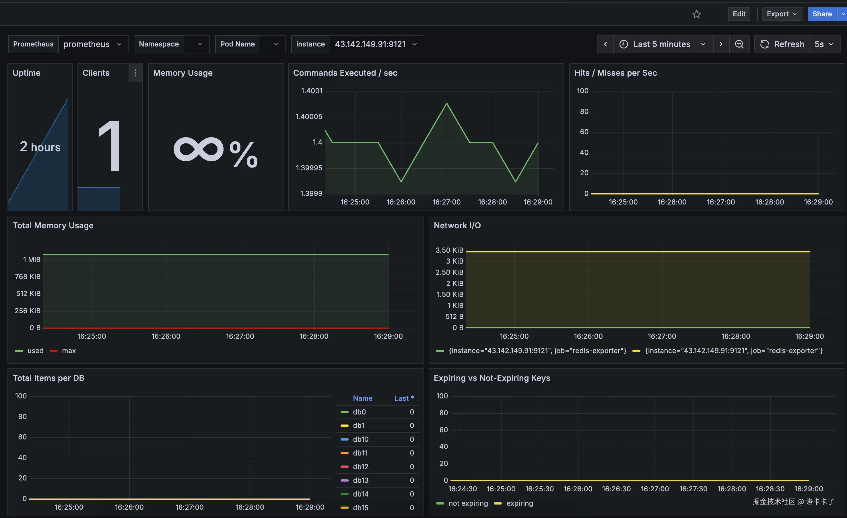 - "Refresh interval" 调整为 5s~10s,便于观察实时变化。