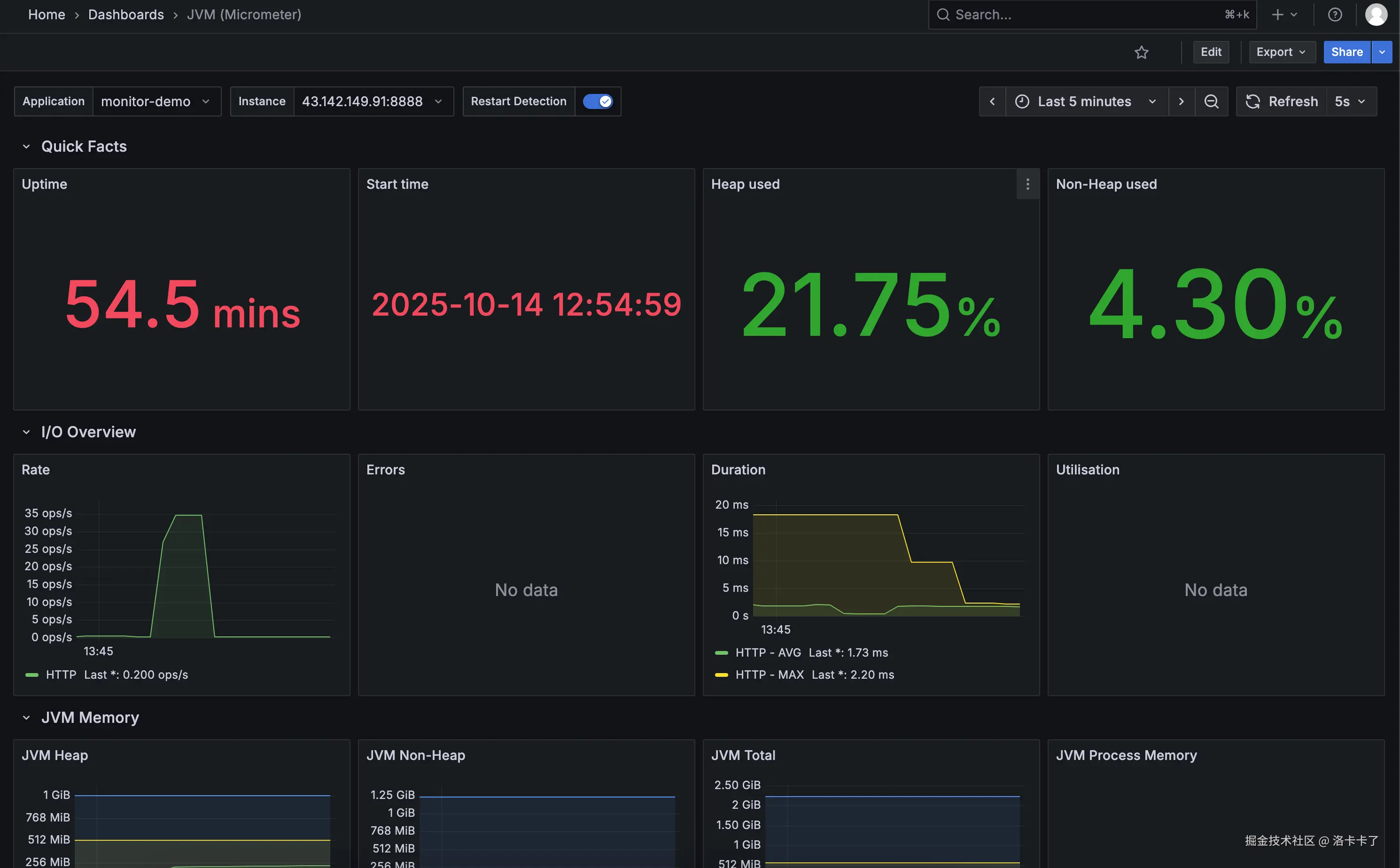 讲解如何与 Prometheus 集成、暴露监控指标,并完成 Prometheus + Grafana 的整体搭建。