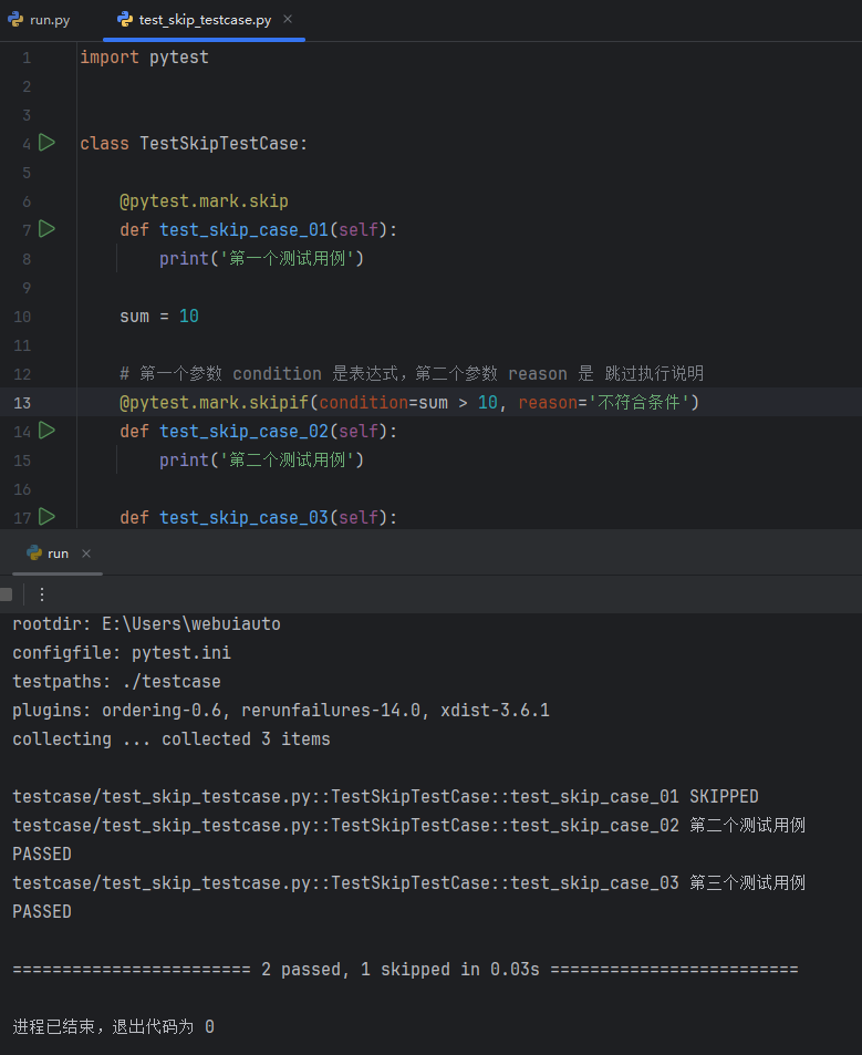 @pytest.mark.skipif(condition=True, reason='不符合条件')