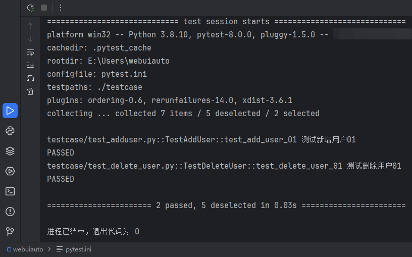指定测试用例路径:testpaths = ./testcase (设置执行的路径,测试用例的目录设置)