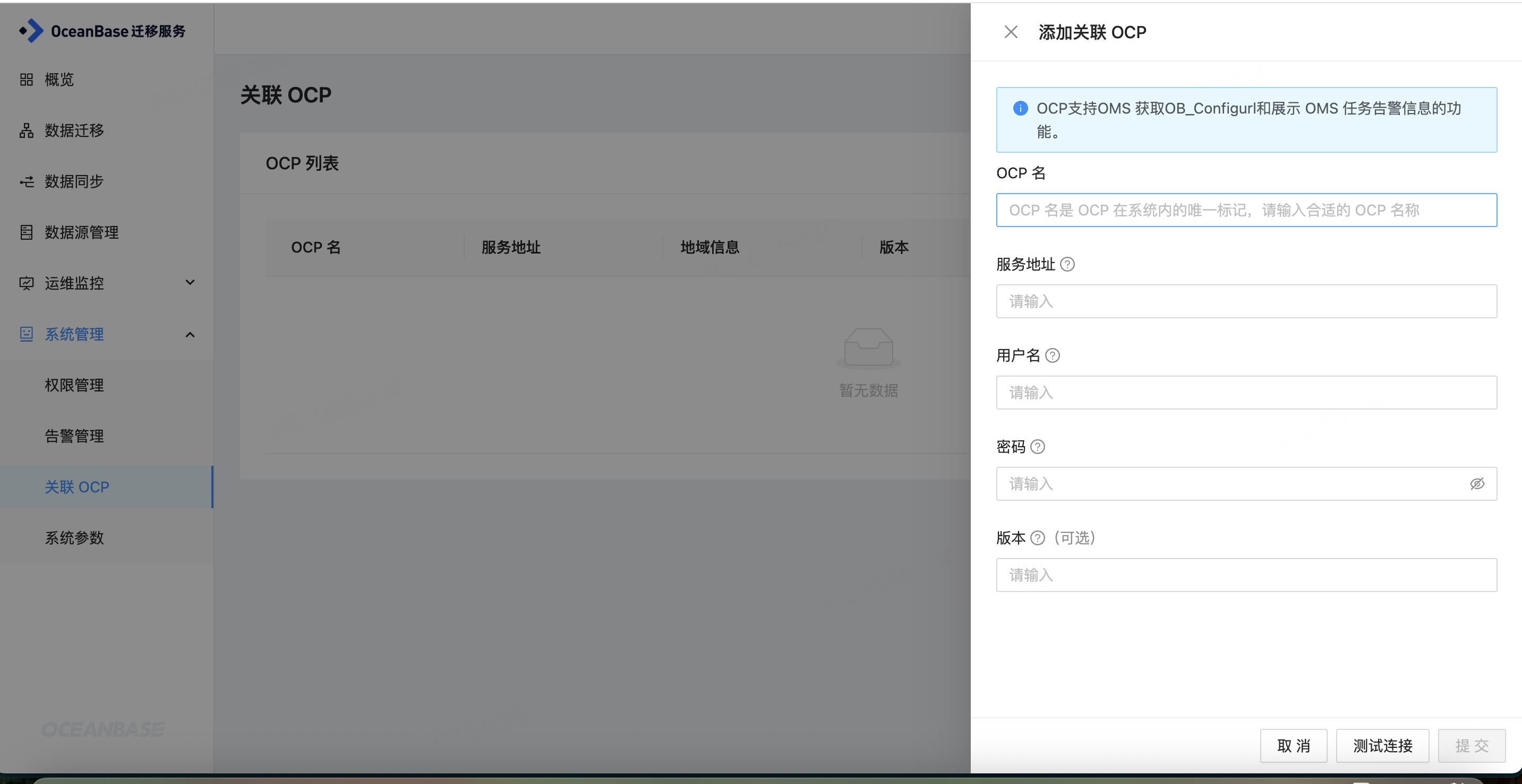 - 请确保 OMS 社区版部署服务器和 obproxy、OBServer 节点、OCP,以及参与迁移、同步的数据源之间的网络连通。