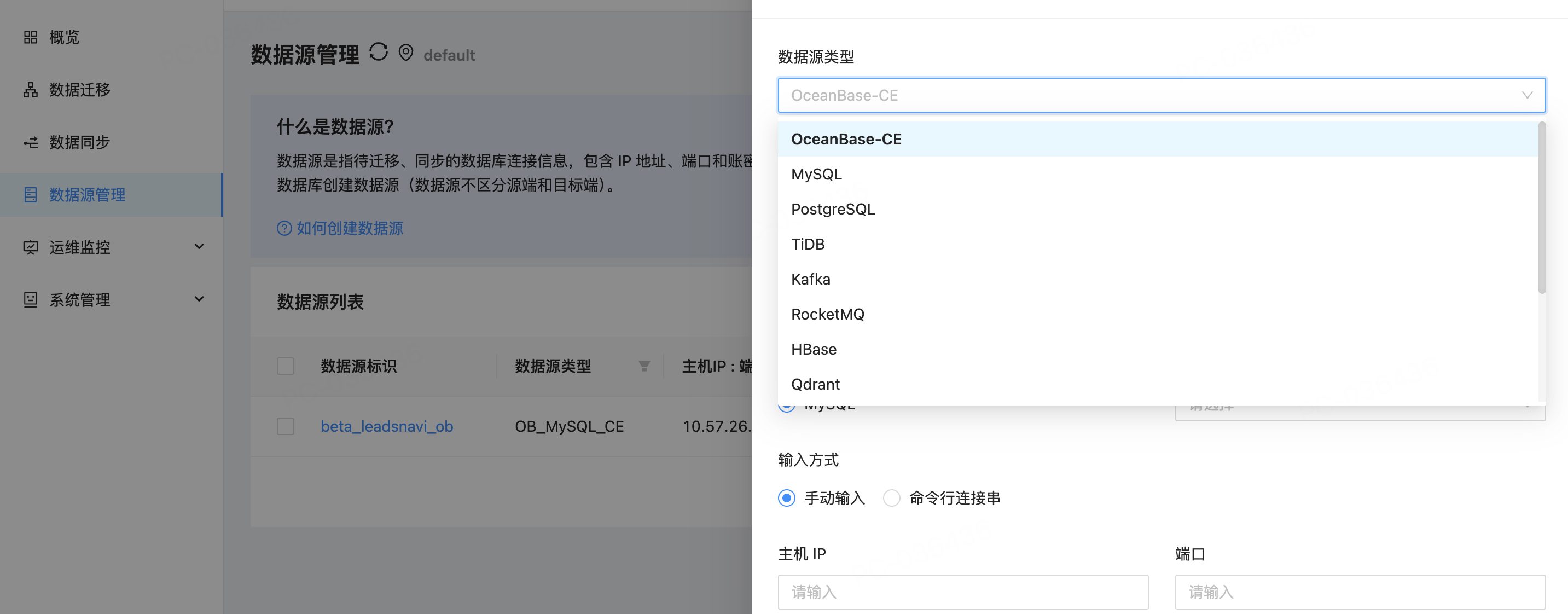 用于存储 OMS 社区版的元信息,可选 Oceanbase 或者 MySQL