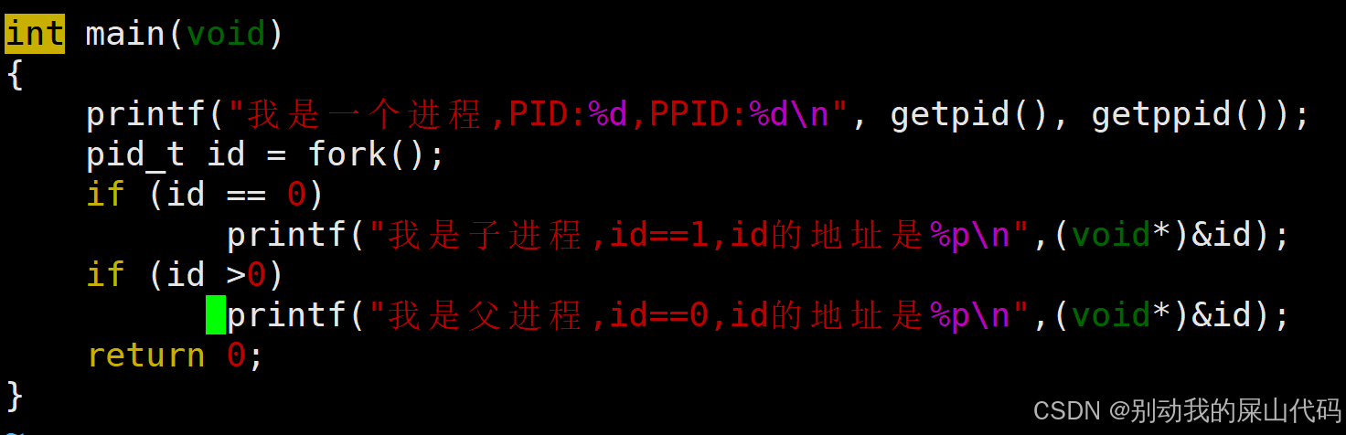 虚拟地址映射的物理地址变成了子进程开空间的地址