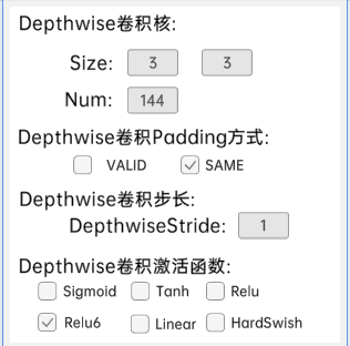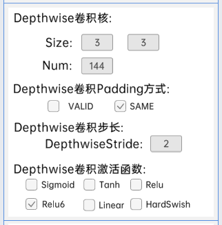 本bottleneck结构第二层DwiseConv2D卷积核的宽、高、个数是(3 x 3 x 144),padding方式为SAME,步长为1,经过batchNorm进行归一化,以及Relu6激活函数,经过计算可知,输出特征矩阵为(56 x 56 x 144)。