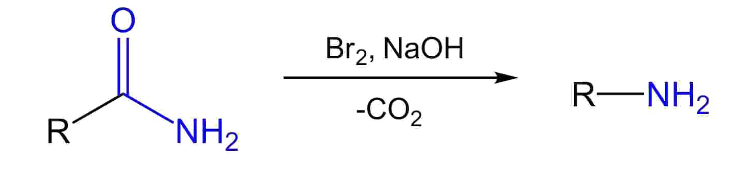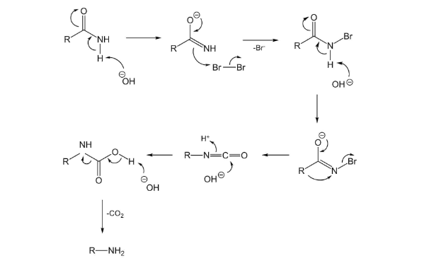 酰胺与次卤酸盐的碱溶液(或卤素的氢氧化钠溶液)作用时,放出二氧化碳,生成比酰胺少一个碳原子的一级胺的反应。