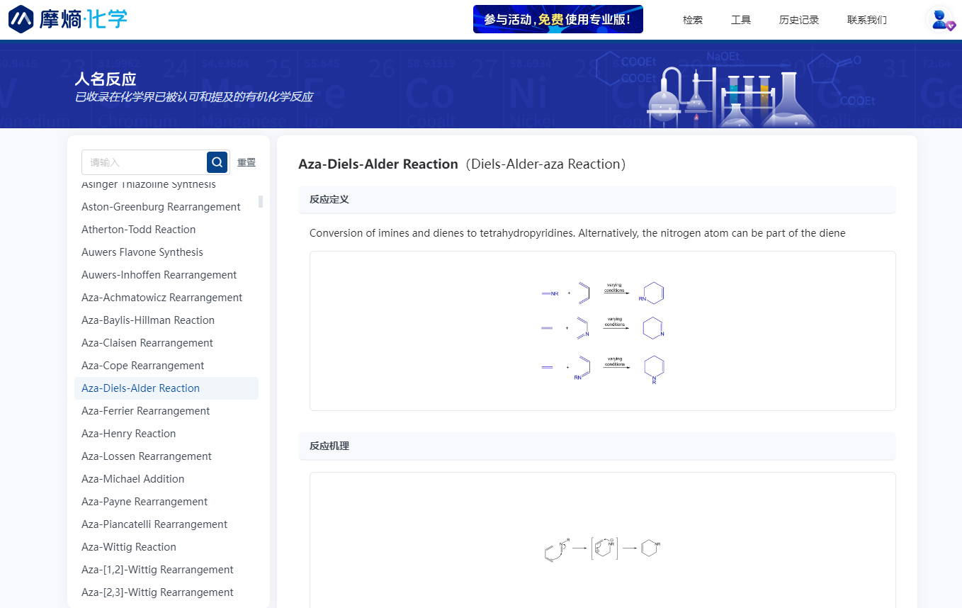 上述反应机理图片小编都是在摩熵化学 看的哦,有感兴趣的小伙伴可以自行查看,摩熵化学设有专门的"人名反应"板块。不仅提供反应文字描述,更常包含反应机理图示和相关示例,示例包括反应描述和参考文献,可了解到最新研究文献和应用进展。