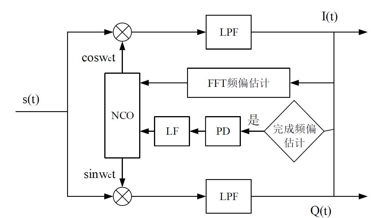 频偏估计辅助Costa 环载波同步的解调系统如下图所示