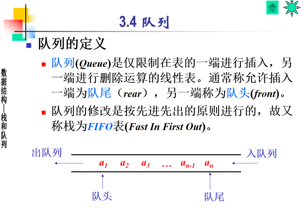 变成 2。这样下次入队,元素就可以存在下标 2 的位置。 - 缺点:每次出队都要移动所有元素,效率很低(比如队列有 1000 个元素,每次出队都要移 999 个,特别费时间)。