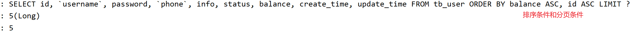 //select id,username,info,balance from user where username like ? and balance >= ?