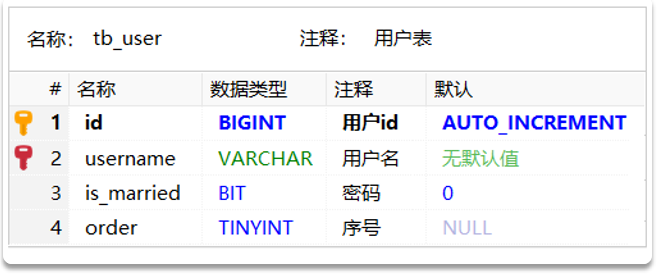 - 名为id的字段作为主键