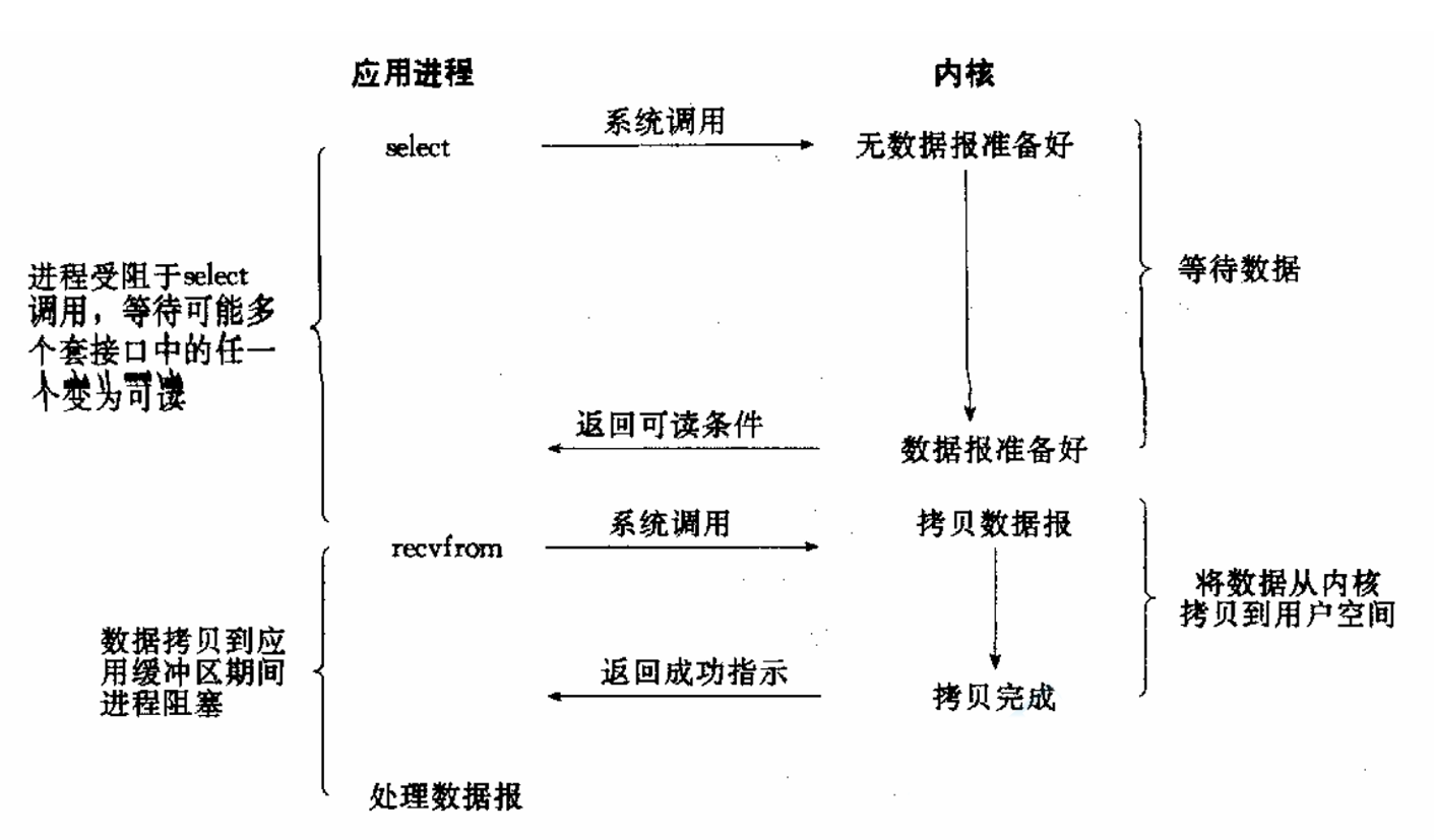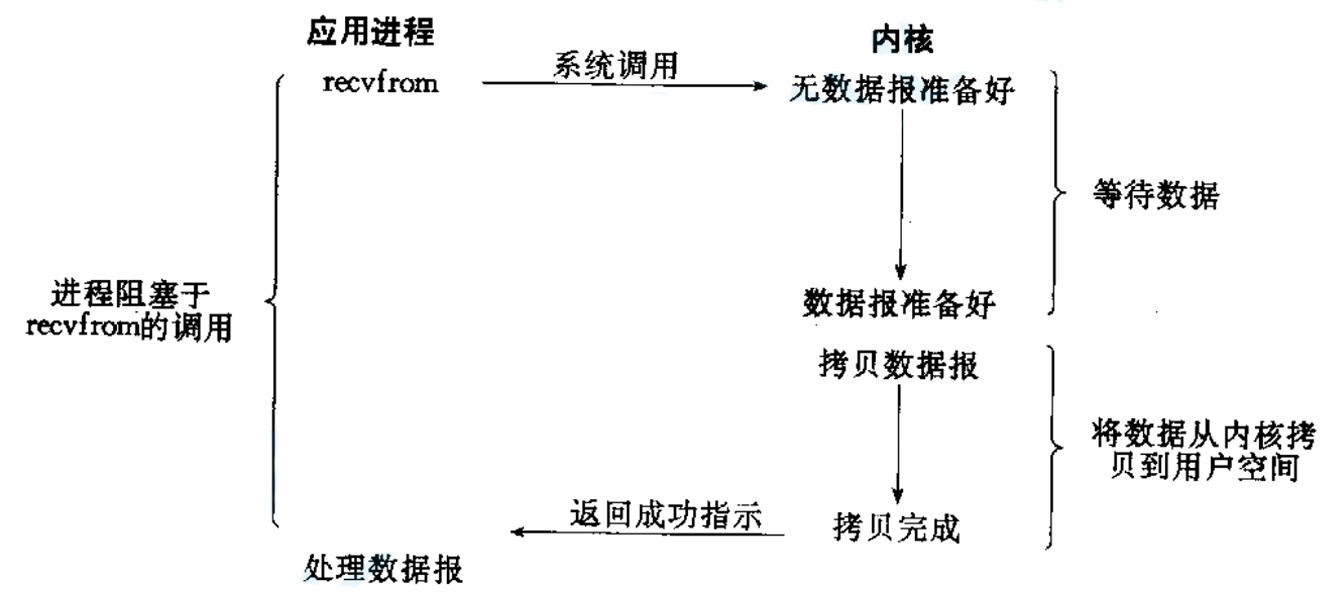 阻塞IO:在内核将数据准备好之前,系统调用会一直等待。所有的套接字,默认都是阻塞方式。