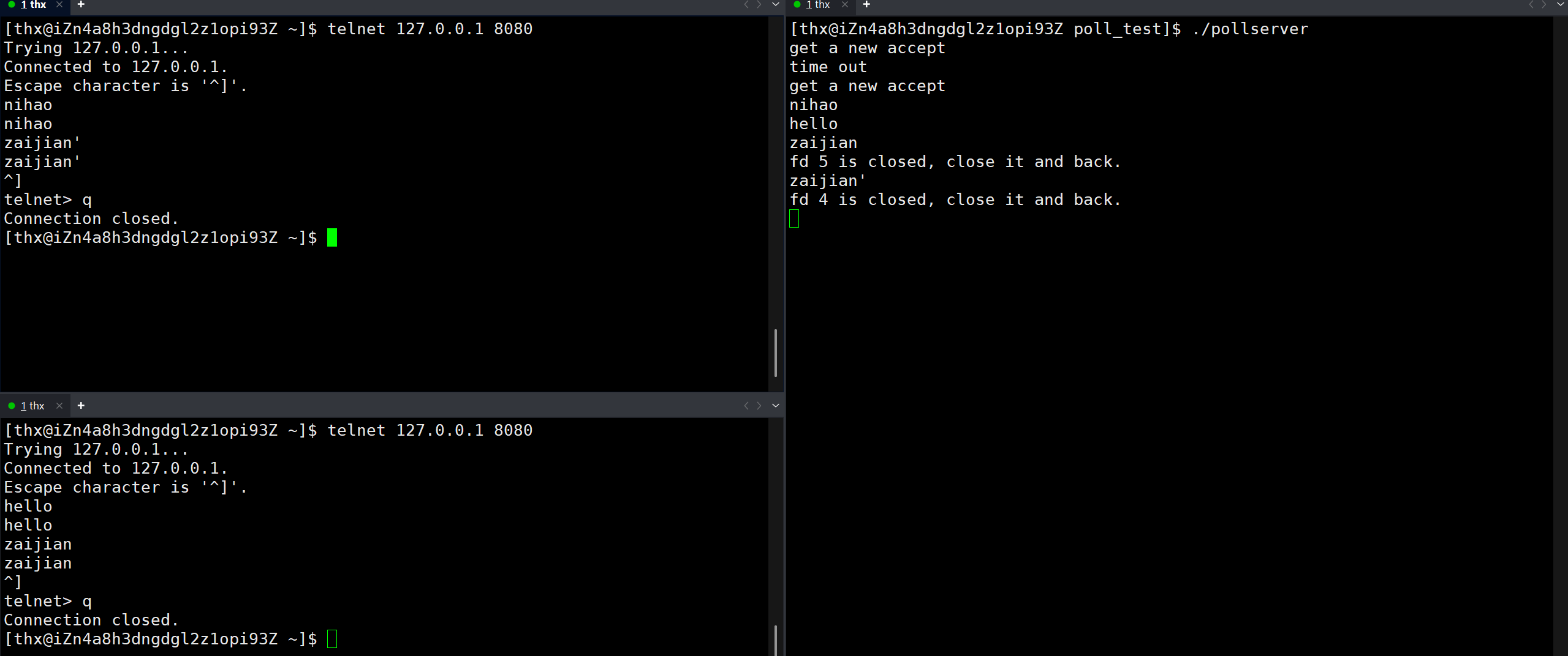 一个是fd创建时为fd创建Connection,再将其加入哈希,之后添加进epoll监视。一个是对端关闭时自己也要关闭,多以删除哈希中的fd,删除epoll实例中的fd,再将它close。
