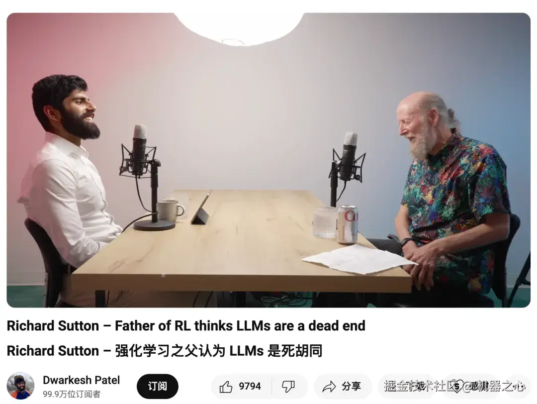 Sutton 最近在 Dwarkesh Patel 的播客《The Dwarkesh Podcast》上的一次访谈。