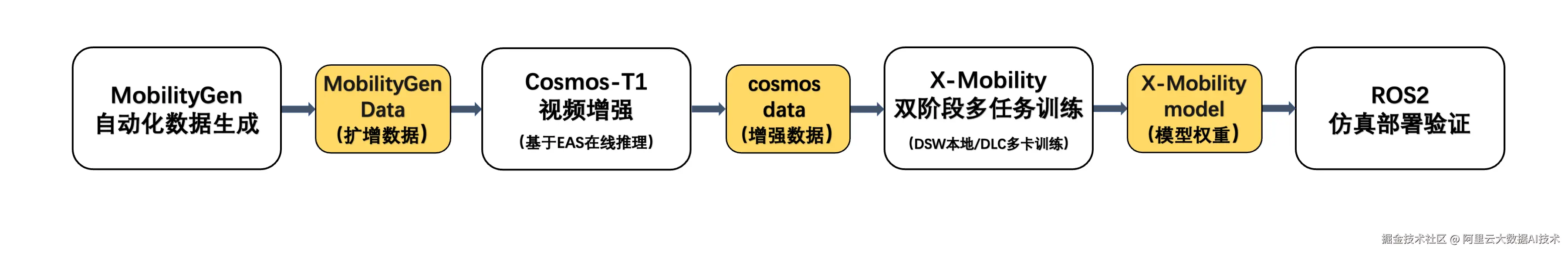 PAI - Notebook Gallery >> 基于世界模型的通用导航与运动控制 PAI 支持使用DSW、DLC、EAS等平台工具和产品,快速使用 Isaac Sim 集成的 MobilityGen 功能,并结合 Cosmos 模型的视觉增强能力,生成大规模演示数据来训练X-Mobility这一具有通用性的导航与运动控制策略,并进行端到端可泛化导航。