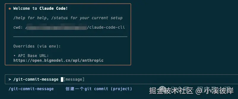 重启Claude Code CLI,输入 /git-commit-message 查看命令信息