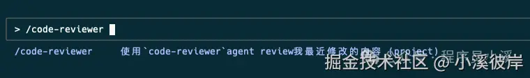 就可以看到在执行自定义命令过程中调用了 code-reviewer agent来完成code reviewer